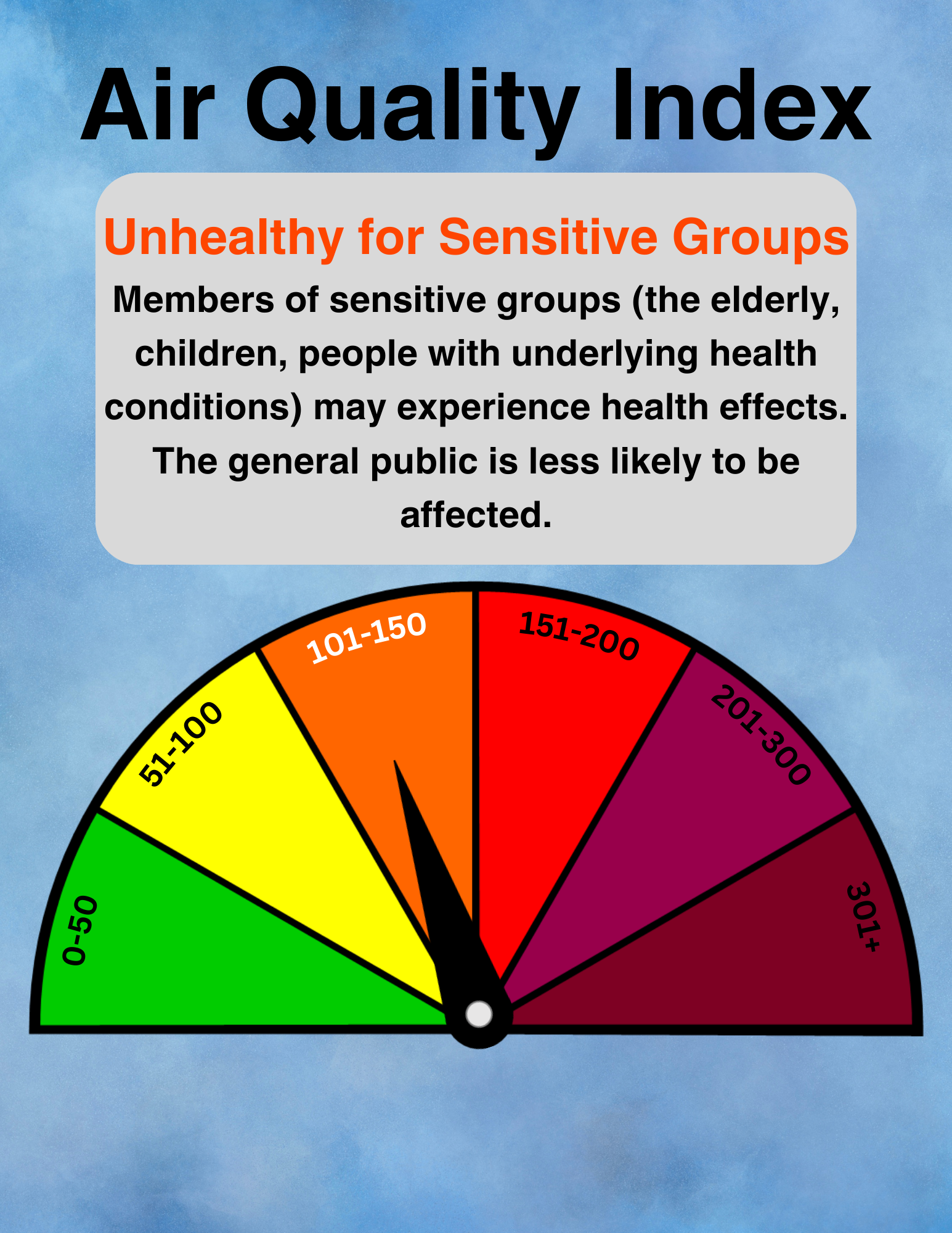 Unhealthy air quality can lead to negative health impacts, especially for sensitive groups. Sensitive groups include children, the elderly, and people with underlying conditions such as asthma or heart disease. Potential health impacts from increased exposure of poor air quality include shortness of breath, wheezing, coughing, eye irritation, chest pain, irregular heartbeat, and headaches